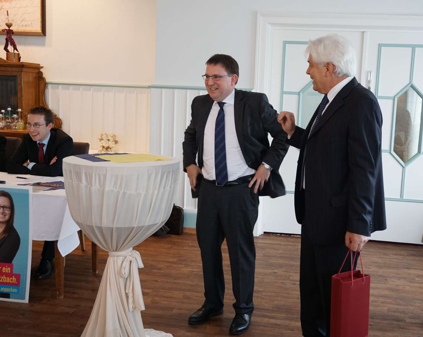 In der anschließenden Diskussion wurde der FDP-Landeschef auch mit kritischen Fragen konfrontiert. So wurde bemängelt, dass in der Öffentlichkeit häufig der Eindruck entstehe, die FDP sei gegen soziale Gerechtigkeit, etwa wenn sie den Mindestlohn ablehne. Ruppert entgegnete, dass er jedem Arbeitnehmer einen guten Lohn, gerne auch mehr als den gesetzlichen Mindestlohn von 8,50€, gönne. Er streite aber für die Erhaltung der Tarifautonomie, weil ein per Gesetz festgelegter und für alle Regionen des Landes verbindlicher Mindestlohn nicht gerecht sein könne. „Es macht einen Unterschied, ob ich im Rhein-Main-Gebiet oder in Brandenburg lebe, weil Geld dort unterschiedlich viel wert ist. Deshalb brauchen wir regional ausdifferenzierte und keine einheitlichen Löhne“. Trotzdem müsse die FDP lernen, ab und an auch einmal verbal abzurüsten und nicht nur als reine Wirtschaftspartei wahrgenommen zu werden. Zudem müsse die Partei ihre Positionen besser kommunizieren, was aus der außerparlamentarischen Opposition heraus schwierig sei. Wenn ihr das gelinge, würde sie in einer Phase der allgemeinen Verunsicherung auch wieder stärker profitieren.